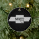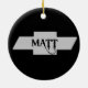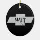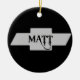 Matt ist auf einem kauen Emblem-Ornament eingeschrieben.