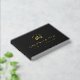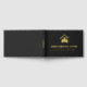 Matte schwarz und gold Gästebuch für Ihren kleinen Geschäftsurlaub Vermietung mit dem Namen in Goldfolie unter Bergen und Kiefern. Elegantes Gästebuch mit Kontur von Bergen, Kiefern und Ihrem Firmennamen vor mattem schwarzem Hintergrund. Das Gästebuch aus Schwarz und Goldfolie für Ihre Zuhause, Verleihhhütte oder Mountain Bed and Breakfast mit individueller Goldfolie.