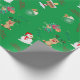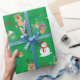 Matte Christmas Green Background Rentier, Snowman Geschenkpapier