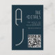 Matte Monogram Minimal Qr Code Wedding Navy Blue Begleitkarte