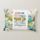 Ein Kissen mit Christlicher Schrift mit inspirierendem Zitat zeigt einen Teil der Bibel Verse Matthew 17:20, um es mit Jesus zu sagen: "Wenn du so klein wie ein Senfskorb glaubst, wird dir nichts unmöglich sein." Es ist gerahmt mit einer wunderschönen Blumenkunst, darunter einfache, weiße, rosa und gelbe wilde Blume auf blauem Hintergrund.