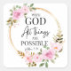Matthew 19:26 Möglich mit Gott Pink Floral Quadratischer Aufkleber