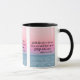 Diese zweifarbige Tasse zeigt die "Matthew 24:42" Bibel-Zitat-Schrift KJV in einem kursiven Schriftart von Rebellen mit schwarzen Buchstaben und Bibelzitat über einem Bild, das einen rosa und gelben Himmel über einem blauen Meereshintergrund zeigt, in diesem Bibelziffer aus der King-James-Bibel. Die Felgen & Griffe sind in passenden Farbtönen in Mikrowellen- und Geschirrspüler-Keramik in 11 Unze- oder 15 Unzen-Größen erhältlich.