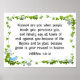 Christliches Zitat-Literaturposter zeigt einen grünen Kleeblatt mit einem Vogel und blauen Blumen. Es zeigt einen Teil der Beatitudes, Jesus' berühmte Lehre aus der Predigt auf dem Berg, Bibel Verse Matthew 5:11-12, "Selig bist du, wenn die Menschen dich beleidigen, dich verfolgen und fälschlicherweise alle Arten von Bösem gegen dich sagen, wegen mir. Freuen Sie sich und seien Sie froh, denn großartig ist deine Belohnung im Himmel."