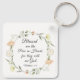 Der inspirierende Zitat-Schlüsselanhänger zeigt einen einfachen Blumenkranz mit sanften, rosa und weiße Blume und Grünpflanzen. Es zeigt einen Teil der Beatituden, Jesus geliebte Lehre von der Predigt auf dem Berg, Bibel Verse Matthew 5:8, "Selig sind die Reine im Herzen, denn sie werden Gott sehen."