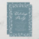 Einfache und elegante Urlaubsparty-Einladung mit einem Rand von weißen Schneeflocken und Kiefernästen auf mattiertem, blauen Hintergrund. "Holiday Party" wird in einem fett-weißen Kalligraphieskript angezeigt, das Ihre Party-Details wie unten gezeigt enthält. Die Schneeflockenfeier lädt zum Verweilen ein, um ein schönes Schneeflockenmuster zu zeigen.