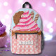 Dieser wunderschöne Rucksack ist ideal für Kinder, die Liebe Kuchen! In der vorderen Hosentasche befindet sich ein weißer Polka Dotcupcake-Wrapper, während die Oberseite einen reichen Schokoladenkuchen mit rosa Zuckerguss, bunten Sprinklen, einem Schokoladenkeks und zwei Schokoladenkeksen präsentiert. Personalisieren Sie es mit dem Namen Ihres Kindes, um es besonders und einzigartig zu machen!