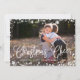 Einfache und schicke Urlaubsfotokarte mit ihrem liebsten Foto, das mit einem weißen Schneeflocken überzogen ist, das das Aussehen eines vereisten, mattierten Fensters anregt. "Weihnachts-Cheer" erscheint ganz unten in modernen weißen Schriftzeichen. Personalisieren Sie mit Ihrem Familiennamen und dem Jahr in das Design eingebettet. Die Karten wechseln zu einem subtilen Weinmuster in festlichem Cranberry Rot. Foto mit freundlicher Genehmigung der Storytree Studios, Stanford, CA.