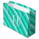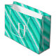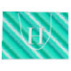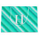 Diagonale Streifen mit dem Aussehen von mattiertem Glas in verschiedenen Farbtönen von türkis / Pfau und Aqua mit Weiß, mit einem optionalen Monogramm. Wählen Sie eine Initiale, um die Personalisierung zu übernehmen, oder löschen Sie sie ohne Monogramm. .