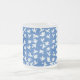 Eine hübsche mattierte Tasse aus Glas mit schönem "White Dove"-Design auf einem hellblauen Hintergrund, aus einer handgemalten Papiercollage von Judy Adamson.