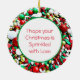 Mattiertes Weihnachtszuckerkoch mit Candy Sprinkles lustige Feiertagsschmuck. Auf der Rückseite des Ornaments ist ein Ort, wo Sie eine personalisierte Nachricht setzen können.