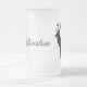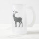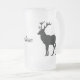 Diese große mattierte Tasse aus Glas wird mit einem Kunstdruck eines Elchs mit gelbem Stein gezeigt. Passen Sie dieses Objekt an oder kaufen Sie, wie es ist. Bild