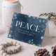 Beeindrucken Sie jeden auf Ihrer Weihnachtskarte mit einer eleganten Schneeflockkarte. Die festliche Non-Foto-Begrüßungskarte bietet "Peace" auf der Vorderseite in einem modernen, trendigen Serif-Schriftart mit Ihrem Namen oder benutzerdefinierten Text, wie unten gezeigt. Das Design zeichnet sich durch eine Grenze von weißen Schneeflocken mit einem marinen Aquarell-Hintergrund aus. Im Inneren der Snowflake-Urlaubskarte finden Sie Ihre individuelle Nachricht im Seetext. Das Design koordiniert mit unserer Mattierten Peace Christmas Card Kollektion.