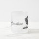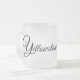 Diese mattierte Tasse aus Glas wird mit einem Kunstdruck eines Büffels mit Yellowstone-Text gezeigt. Passen Sie dieses Objekt an oder kaufen Sie, wie es ist.