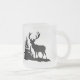 Diese mattierte Tasse aus Glas wird mit einem Kunstdruck eines Hirsches mit Yellowstone-Text gezeigt. Passen Sie dieses Objekt an oder kaufen Sie, wie es ist. Bild