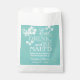 Ein tropisches Design mit Hibiskus-Blume, Frangipani-Plumeria-Blume und aquamarinem blauen Hintergrund mit tropischem Laub. Das Muster ist subtil, nur um Textur hinzuzufügen. Der Text lautet "Essen, Trinken und Be Maui'd". Personalisieren Sie diese lustigen Leckerei Taschen für Ihre Hawaii oder Hawaiian Destination Beach Hochzeit. Besonders toll sind sie, wenn Sie ein Süßigkeiten-Bar-Buffet für die Gäste haben, um dies zu danken. Ich habe dieses Design in verschiedenen Farben. Wenn du nicht findest, was du suchst, dann melde mich einfach.