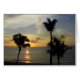 Weiche, schwingende Palmen vor pastellfarbenen Wolken, während die untergehende Sonne in Kahana, Maui/Hawaii im Ozean reflektiert