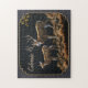 Maultierhirschdollar und -damhirschkuh auf einer sunlit Kante, die in Herbst glüht, färbten Licht. Personifizieren Sie mit Ihrem eigenen Text, Initialen oder Monogramm. Betont mit einem hoch entwickelten gemusterten Hintergrund des Holzkohlengraus.