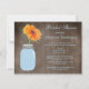 Elegante rustikale Land Brautpartyeinladungen mit einem niedlichen blauen Vintagen Maurerglas vector Illustration und schöne orange Gerberagänseblümchen-Blume auf einem stilvollen Korneffekthintergrund des dunklen Brauns des Shabby Chic gewaschenen heraus verwitterten hölzernen. Nobles, modisches, modernes modernes lädt perfektes für Frühling, Sommer und Fall/Herbstduschen ein. Aller Text kann leicht besonders angefertigt werden, um Ihren Bedarf zu erfüllen und Sie können die Schriftartart, -farbe und -größe des Schriftartes ändern, wenn Sie wünschen. Wenn Sie irgendeine Unterstützung benötigen, die Ihr Produkt in Verbindung treten besonders anfertigt mit mir bitte, durch meinen Speicher und ich bin glücklich zu helfen. MERKEN SIE BITTE: Alles lädt auf Zazzle haben Ebenedruckbilder ein.