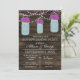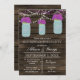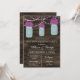 Stallholz und Saitenleuchten , Maurerkrübel mit hellvioletten Blumen rustikale Party Einladungen