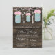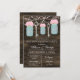 Stallholz und Saitenleuchten , Maurerkrübel mit hellrosa Blume und Vintage Tasten rustikale Party Einladungen