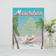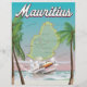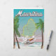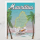 Illustrierte Karte von Mauritius in einem schönen Vintagen oder Retro-Stil, mit einem Flugzeug, das auf einem schönen Strand landet.
