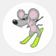 Maus als Skifahrer mit Ski Runder Aufkleber