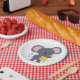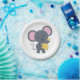 Eine niedliche Maus im Cartoon-Stil, die Käse isst. Dieses Design wirkt auf diese Paper-Teller sehr effektiv