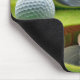 Überraschende kleine Maus in einem Golfplatz mit Golfclub und Ball in der Nähe der Kante