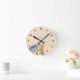 Maus mit blauem Schirm orange-rosa Blume Papier Runde Wanduhr
