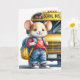 Eine kleine anthropomorphe Maus mit rotem Shirt und blauer Jeans steht vor einem gelben Schulbus mit einem gelben Rucksack. Die Insider-Meldung kann geändert werden.