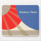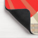 Das Mouse Pad ist abstrakt in den Farben Creme, Rot, Blau und ein braunes, digitales Design mit Strahlen.