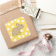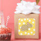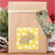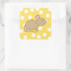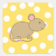 Eine niedliche hellbraune Maus auf einem gelben Hintergrund mit weißen Punkten, die dem Käse ähnlich sind.
