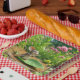Maus Rudern eines grünen Leaf-Bootes Pappteller