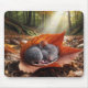 Eine kleine Maus schläft friedlich in einem Herbstapfel auf einem Waldboden