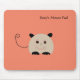 Maus-Pad mit niedlicher illustrierter Maus und eine Stelle, um Ihren Namen zu setzen. Der Name kann auf dem Pad geändert werden. Der Hintergrund ist orange, die Maus bräunlich und schwarz.