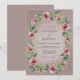 This artwork features a sophisticated palette of mauve and sage green. A lush arrangement of watercolor roses and delicate greenery creates a romantic atmosphere. Soft floral accents and verdant leaves provide a timeless aesthetic for an elegant event. The artistic botanical elements offer a graceful and ethereal feel.