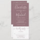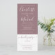 Eine Einladung zur Hochzeit mit modernen Schriftnamen und eleganter Typografie auf mauvem Hintergrund. Die Einladung enthält eine RSVP-Karte, die abgeschnitten werden kann, und Informationen zu den Gästen. Entwickelt von Thisisnotme©