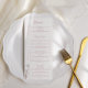 Lassen Sie Ihren Empfang mit diesem mürrisch-blumengeschmückten Hochzeitsmenü aufsteigen, das mit elegantem Drehbuch, minimalistischem Layout und einer zarten Blume-Abbildung aufwartet. Dieses Menü eignet sich perfekt für romantische, pastellfarbene oder moderne Hochzeitsthemen und bietet eine raffinierte und persönliche Touch. Die Menüs und das Layout lassen sich einfach nach Ihren Wünschen anpassen - ob Sie nun ein Abendessen mit Plätscherung oder ein Buffet genießen möchten. Auf hochwertigem Papier gedruckt, ist es sowohl funktional als auch schön. Pärchen nahtlos mit passenden lila Blumeneinladungen, RSVP-Karten und Hochzeitstag-Signage für ein zusammenhängendes Fest.