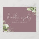 Eine elegante Song-Anfrage RSVP-Karte mit Blumengrün und schicker Typografie auf mauvem Hintergrund. Auf der Rückseite finden Sie Ihre Details und eine lustige Gesangsanfrage. Entwickelt von Thisisnotme©