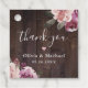 Botanisches Watercolor Blumendesign in Lila lila, Maulbeere, staubige Rose und Pfirsichfarben auf dunklem Stallholzkorn Hintergrund, modernes Drehbuch "Danke" mit Pärchennamen und Veranstaltungsdatum, moderne und elegante, großartige personalisierte Gastgeschenk Hochzeit Tags für rustikale botanische Gartenhochzeit im Herbst und Winter. Sehen Sie sich alle passenden Stücke in der Sammlung an.