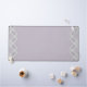 Dieses Schreibtischpolster ist mit einem karierten, grauen Laib- oder Lila-Muster bespannt, das an den links und rechten Kanten auf einem lila dunkelvioletten Hintergrund abgeschnitten ist.