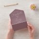 Diese minimalistische Einladung zur Hochzeit mit eleganten Typografien auf lila Hintergrund. Die Einladung enthält eine perforierte RSVP-Karte mit Ihrem Hochzeitswebsite QR Code. Entwickelt von Thisisnotme©
