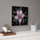 Lilienmalerei in Lila- und Rosatönen mit passenden Tandrien und grünen Blätter auf schwarzem Hintergrund. Kunstwerk und Design von Karlajkitty