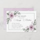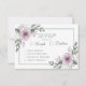 RSVP-Karten für eine lila Rose Floral Wedding Suite. Hübsche Aquarellfarben-Blume und schlängelgrüne Details. Akzeptiert bzw. lehnt mit der Speisekarte ab.