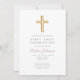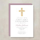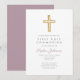 Mauve Script Religious Cross Boy First Communion Einladung