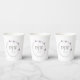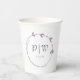 Mit diesen weißen Tassen aus Papier, die eine angesagte Lila-Farbe, einen einfachen Herzkranz mit Bräu- und Bräutigam-Initialen und ein in Stilschrift gedrucktes Hochzeitstermin aufweisen, verleihen Sie Ihrem Hochzeitsfest Eleganz. Bearbeiten und ersetzen Sie die Initialen und das Datum mit Ihrem eigenen.