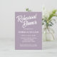 Einfache Einladungen zum Hochzeitsessen mit weißer, stilisierter Schrift auf einem modischen, lila Hintergrund. Bearbeiten Sie Ihre Einladungen, indem Sie Namen, Datum/Uhrzeit, Ort und Kontaktinformationen mit Ihren eigenen Namen ersetzen. Wählen Sie Ihre Einladungsgröße und Ihren Papierstil aus.