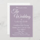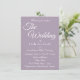 Einfaches Design, Einladung zur Hochzeit mit einem trendigen, mauvfarbenen Hintergrund, den zukünftigen Braut- und Bräutigamen und Veranstaltungsdatum, Uhrzeit, Ort und Registrierung in weißem, stilisiertem Schrift. Personalisieren Sie Ihre Hochzeitseinladung, indem Sie Informationen durch Ihre eigenen ersetzen. Wählen Sie Ihre Einladung Papier Stil und Quantität. Entworfen, um mit unserer Mauve Simple Style Wedding Kollektion zu koordinieren.