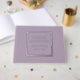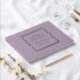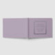 Solid lila Farbe, einfaches Gästebuch mit stilisierten Folienbedruckungen innerhalb eines quadratischen Rahmens, der den Namen der Braut und des Bräutigams sowie das Hochzeitdatum in Ihrer Wahl der Farbfolie enthält. Hier in Silberfolie gedruckt. Wählen Sie Ihren Gastbuchstil aus.